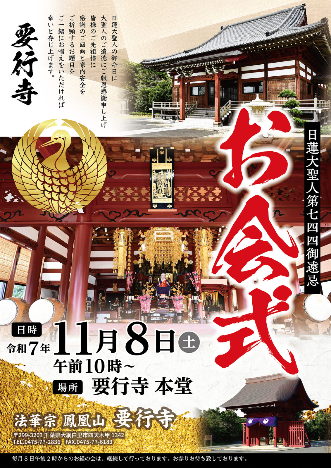 日蓮大聖人の御命日に、大聖人のご遺徳に報恩感謝申し上げ皆様のご先祖様に感謝のご回向と家内安全をご祈願するお題目をご一緒にお唱えいただければ幸いと存じ上げます。